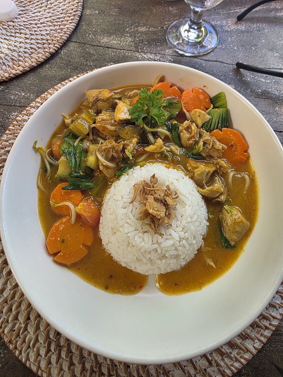The best fish I had in Bali, mahi mahi on the grill, prepared to perfection!! If you order something from the grill, you can take as many sides as you want from the buffet, which contains rice, vegetables, salad, sauces and dressing. All the veggies were really good and the peanut sauce is probably the best one I ever had ! I went back the last day and had a fried rice dish which was equally delicious. A bit more expensive place, but worth it!